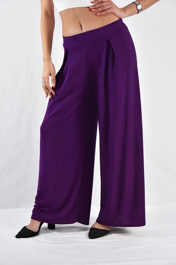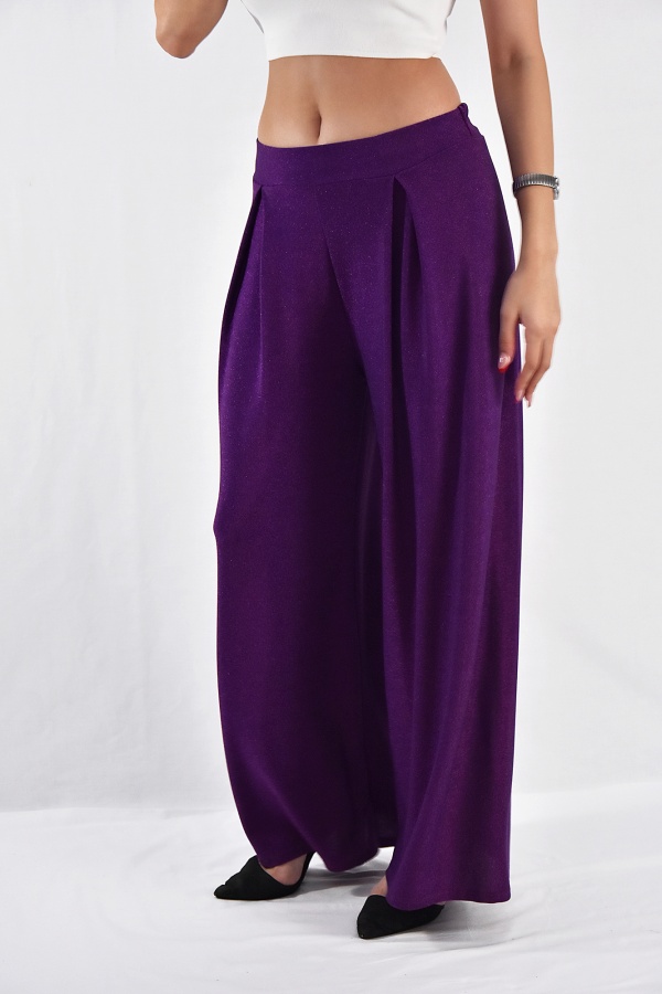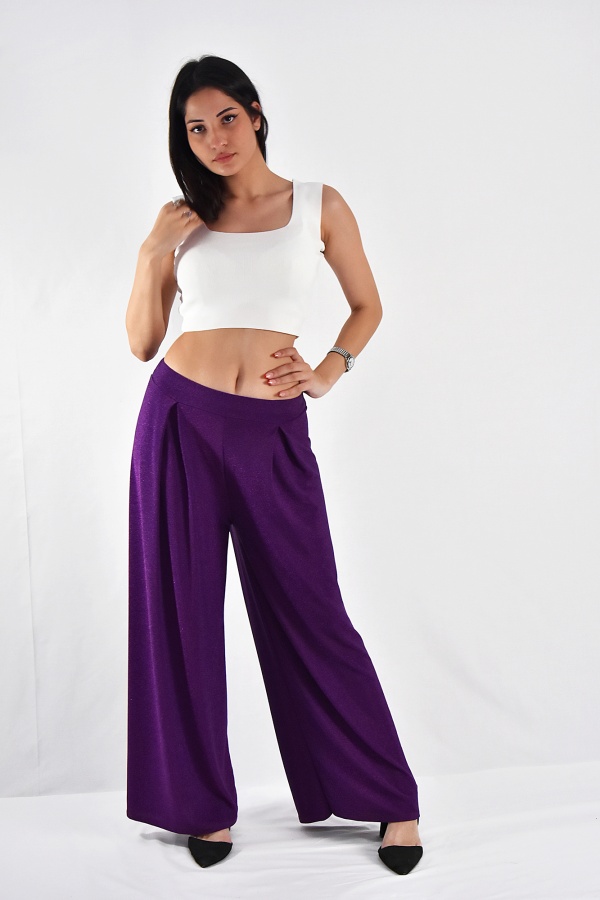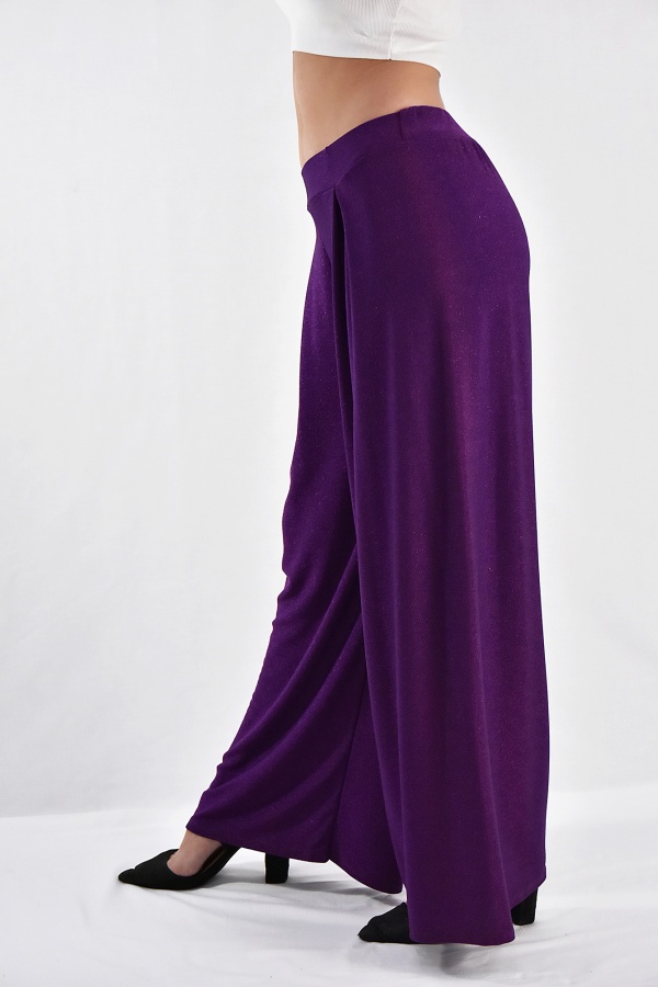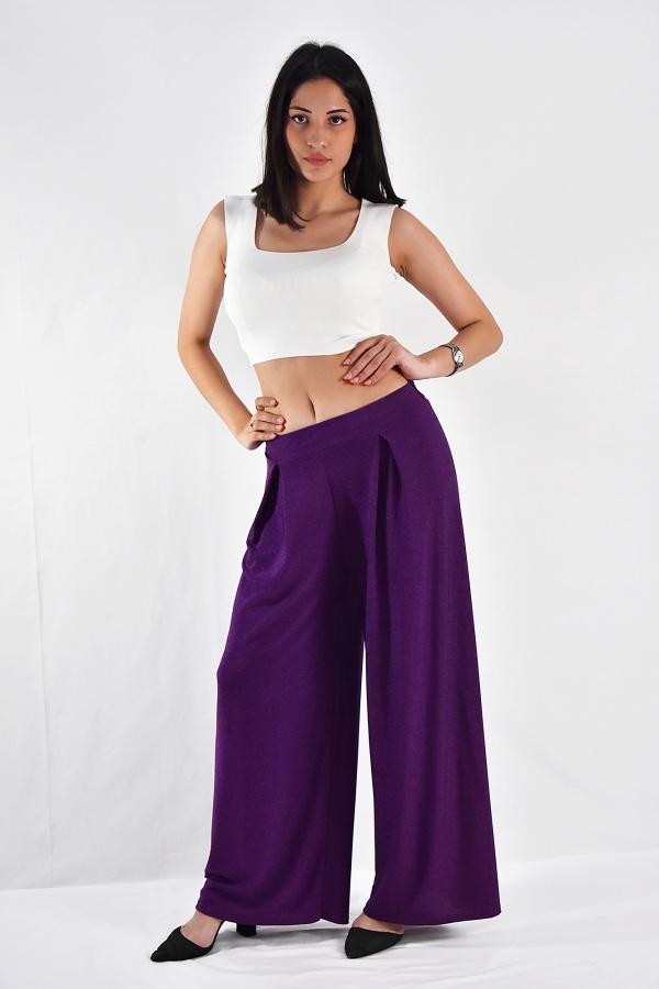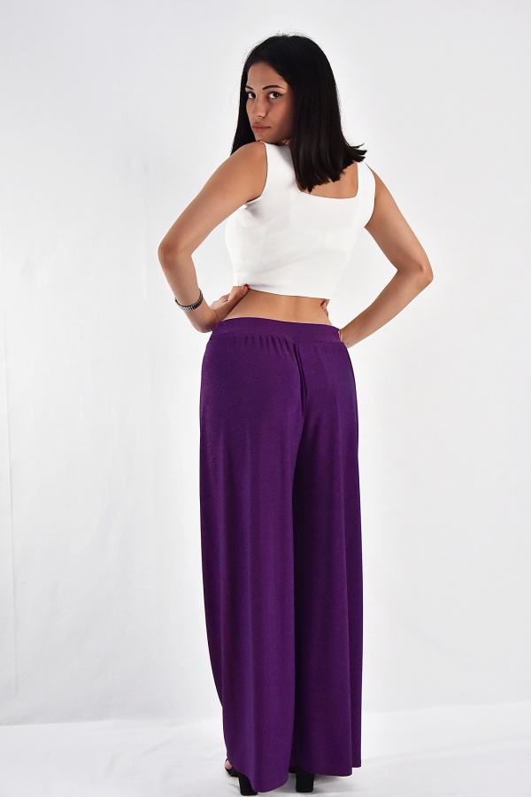 Παντελόνα shiny ψηλόμεση με λάστιχο στην μέση και φαρδιά εφαρμογή.