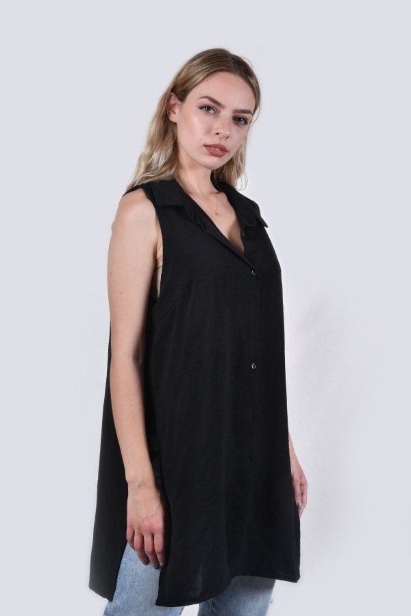 Πουκαμίσα αμάνικη με κουμπιά, μακρυά με κόψιμο στο πλάι!
